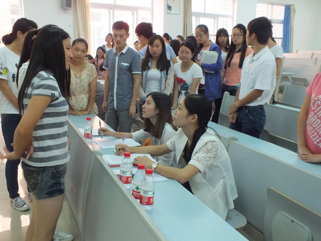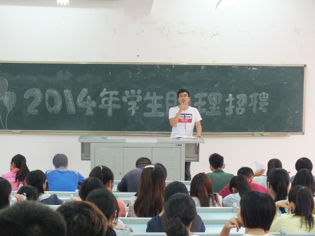 (学生记者 庞敏)10月9日中午12:00点,由学生处主办,大学生自我管理与服务委员会协办的2014-2015学年学生助理招聘面试会在第一教学楼402、403教室成功举办。担任本次学生助理招聘的面试人员有党政办、党群、教务处、图书馆、学生处、金融系等部门的老师。