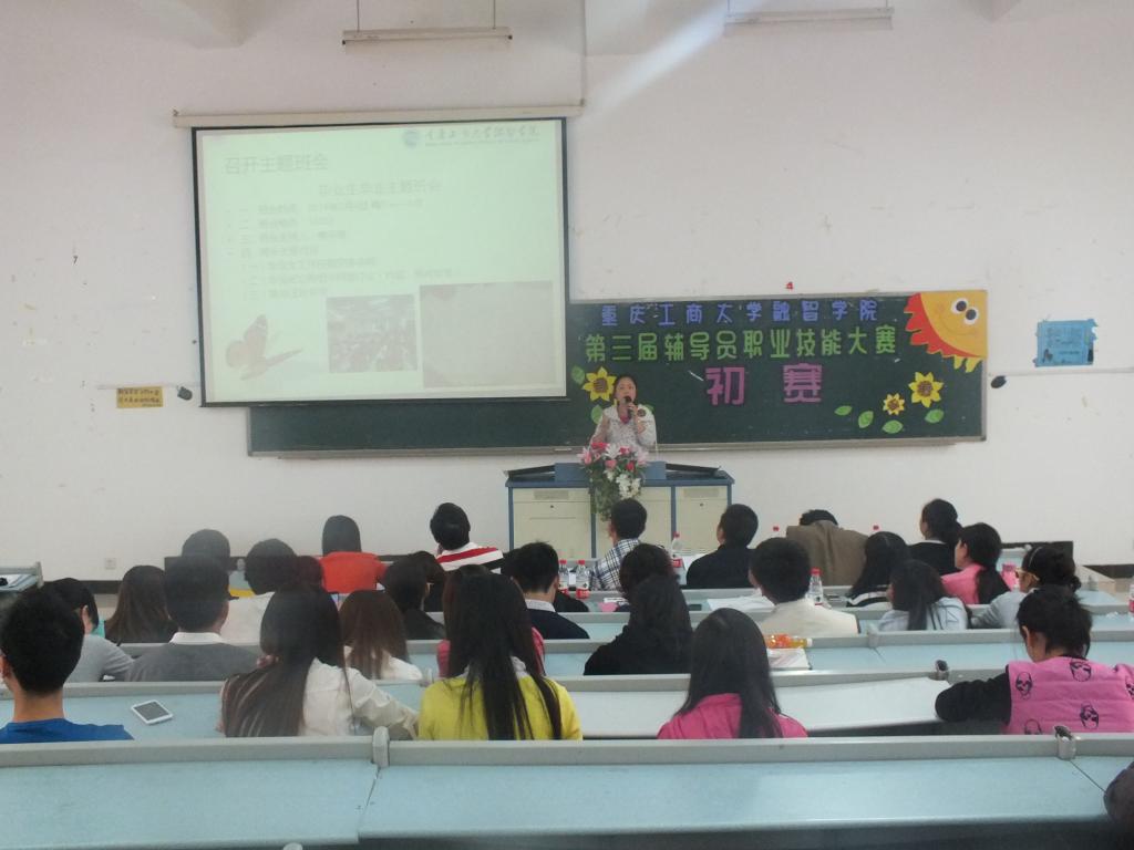 (通讯员 庞敏)2014年5月21日下午13:00,我院第三届辅导员职业技能大赛初赛于教学楼10502教室成功举行。党委副书记陈龙国,院长助理兼学生处处长李果,党政办主任王晓云,人事处处长刘莉,后勤保障处处长叶远帆,招就处处长李春雷,党群工作部副部长倪倩茜,学生处副处长姜文,各系书记、学团办主任出席了本次比赛。